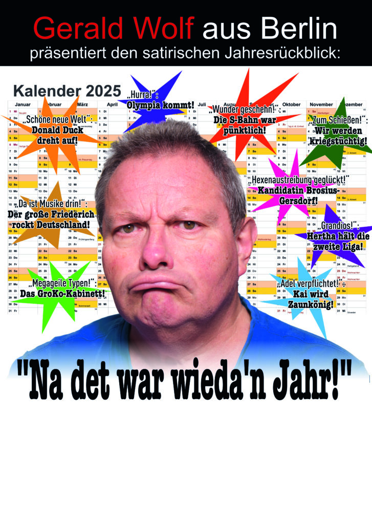 „Gerald Wolf spiegelte das ganze Getöse und Gedöns der politischen Welt-Satire wider, sehr zur Freude des Publikums, das begeistert applaudierte“ (Hamburger Abendblatt)